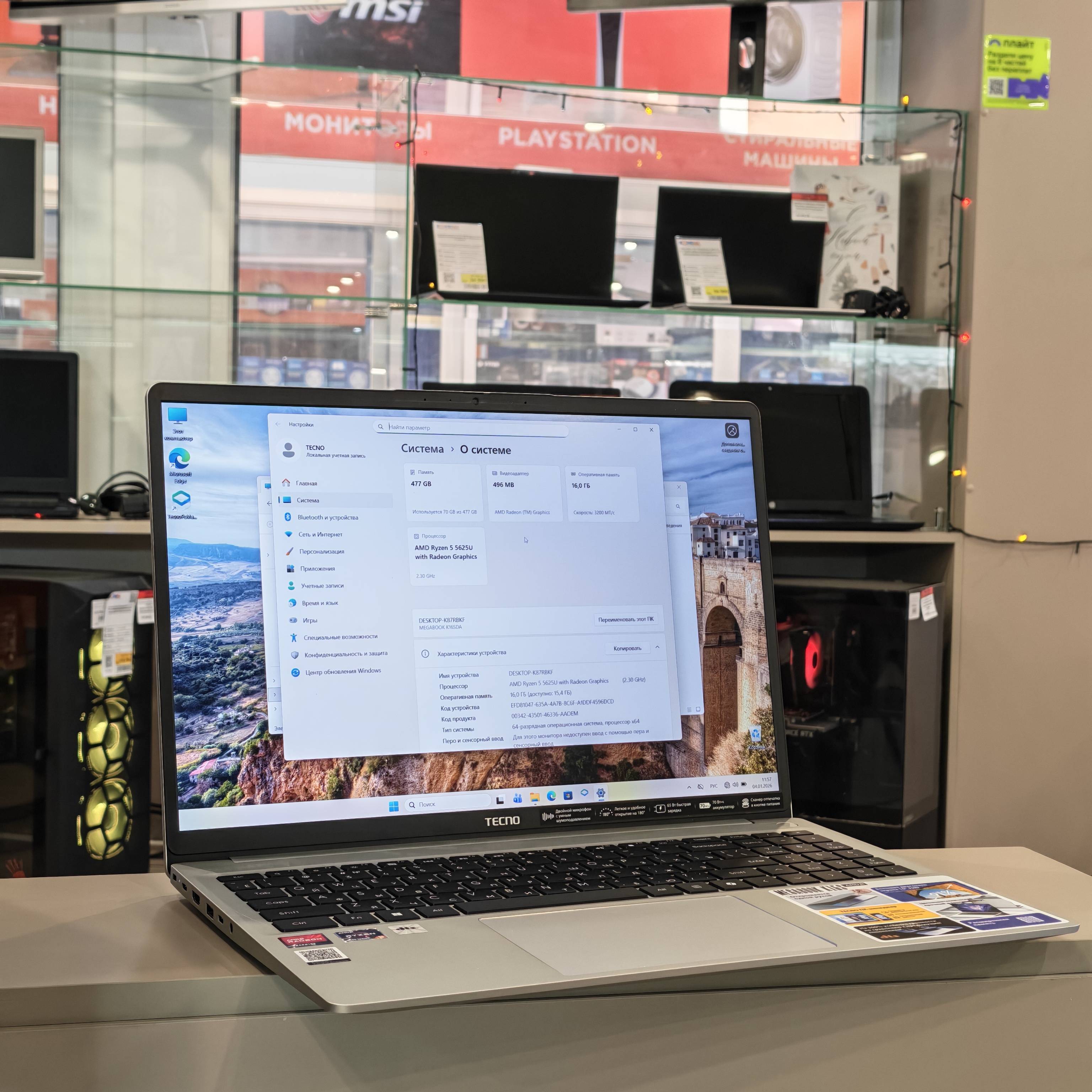 Описание: Tecno K16SDA — универсальный ноутбук для работы, учёбы и дома: Ryzen 5 и 16 ГБ RAM обеспечивают плавную многозадачность (браузер, офис, видеосвязь), а быстрый SSD 512 ГБ — быстрый запуск системы и достаточный запас места для файлов и программ. Отличный вариант, если нужен “шустрый” ноутбук без переплат.